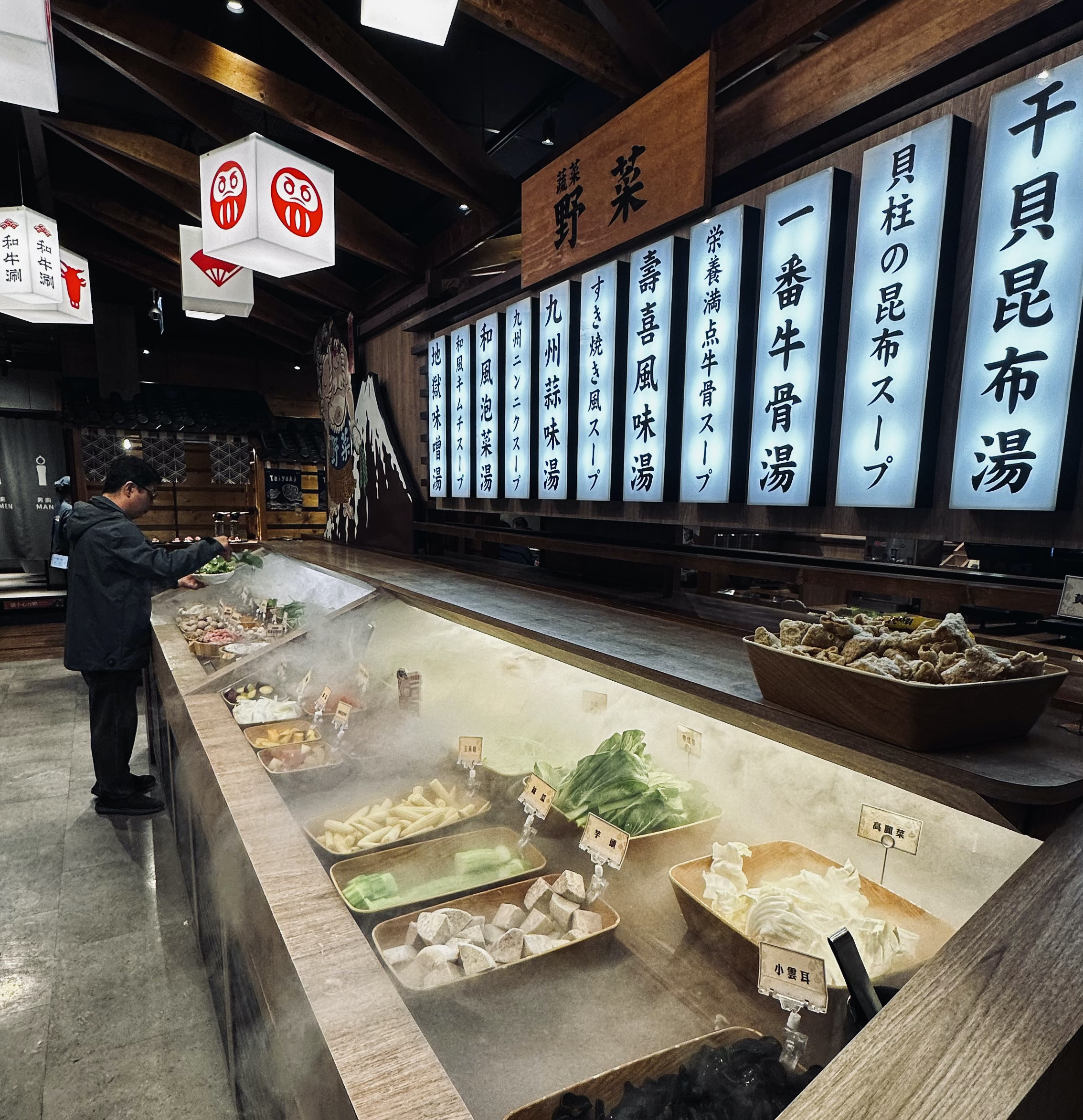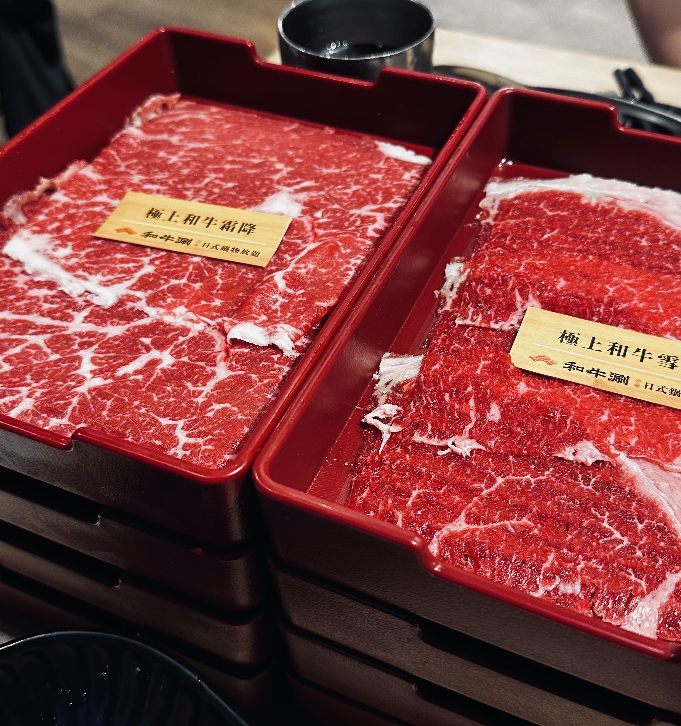 和牛涮嚴選「極上和牛」並完美詮釋多種和牛吃法,打造野菜自助取用區,依季節提供新鮮菜品、嚴選副食與醬料區,共70多種食材無限供應,暢快涮出達人級美味,邀請您與三五好友享受暢快涮和牛的爽感爽感體驗